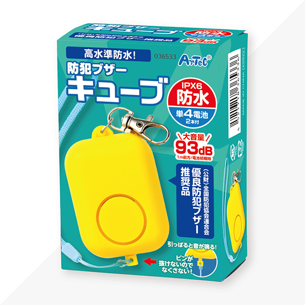 単4電池で使えるコンパクトなサイズの防犯ブザーです。