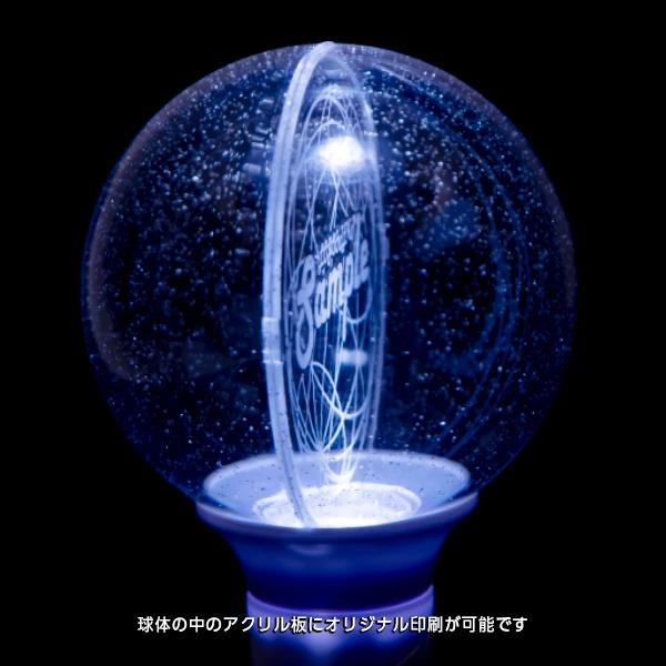 球体ペンライト シャイニングオーブ球体の中のアクリル板にオリジナル印刷が可能です。