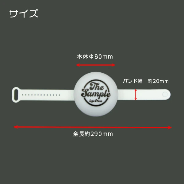| 本体サイズ | 全長:約290mm 本体:直径約80mm 高さ:約35mm バンド幅:約20mm 腕回り:約160mm~最大約250mm |